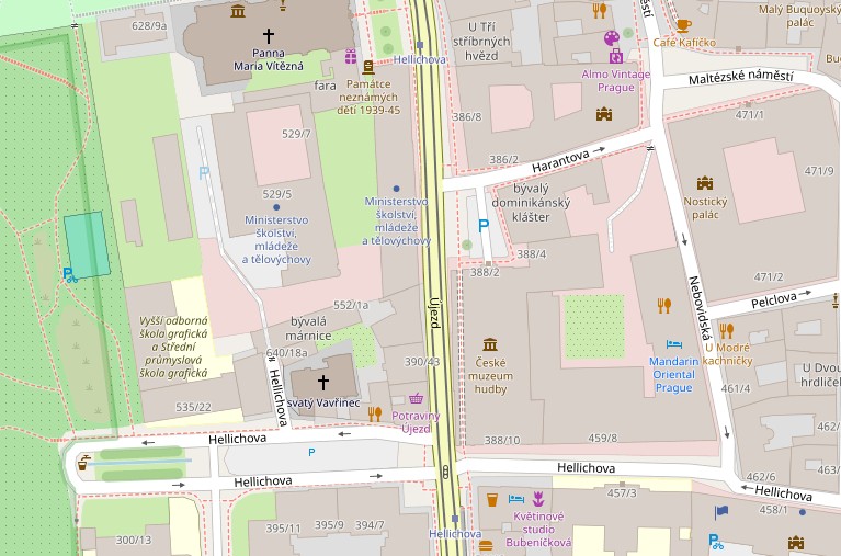 Muzeum Muzyki znajduje się w południowej części Małej Strany, niedaleko przystanku tramwajowego Hellichova.