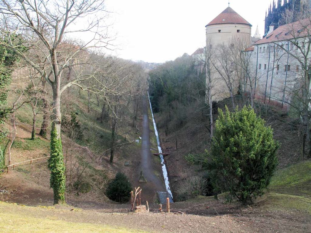 Третій вхід – від Чорної Вежі та станції метро Малостранська Старими Замковими сходами. Цим варіантом краще спускатися, оскільки вам так чи інакше треба буде піднятися до самого початку, до Терезіанського плацу, перш, ніж ви зможете придбати квитки.