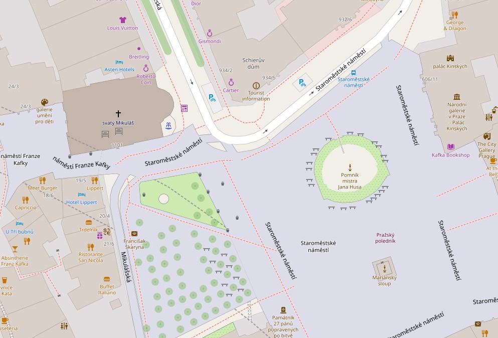 Кам'яниця Шера (Schierův dům) знаходиться на північній стороні Старомнеської площі на розі з вулицею Паризькою (Pařížská).