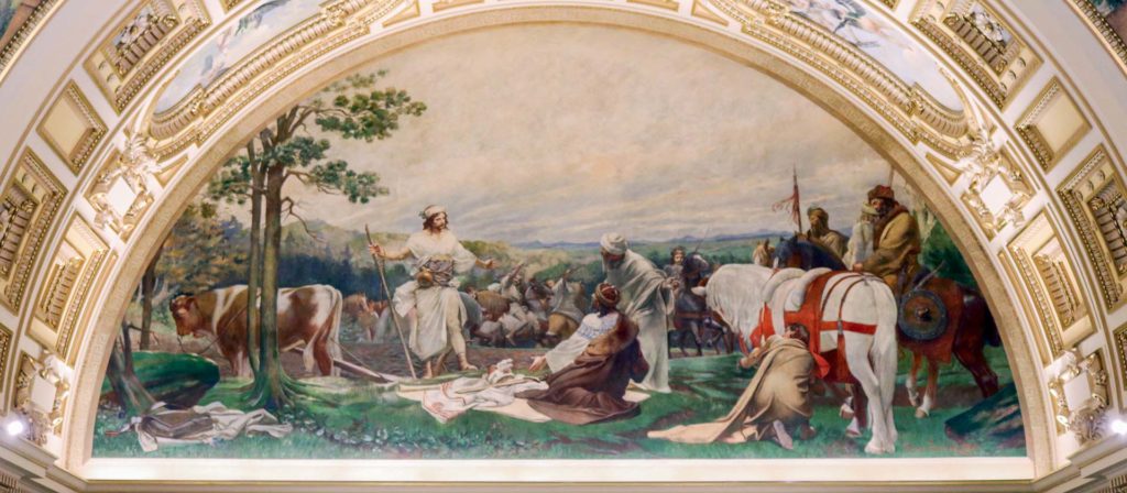 - У краю братнього нам народу Лемузів є поселення, що належить родині Стадиців. Там є широке поле. І на ньому оре землю ваш майбутній князь. Звати його Пржемисл. Виберіть між собою послів, нехай вони візьмуть цей князівський одяг та йдуть до нього і домовляються про шлюб. А за проводиря вам буде мій кінь.